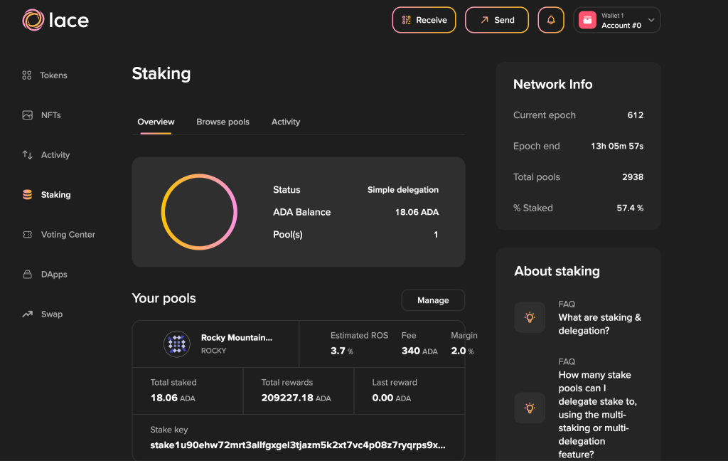 Step 6: Staking ADA in Lace Wallet